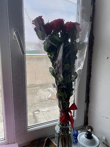 - Оформление: прозрачная флористическая плёнка, красная лента.