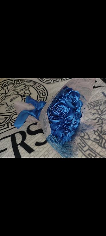 Букет из атласных роз ручной работы. - Цвет роз: насыщенно‑синий