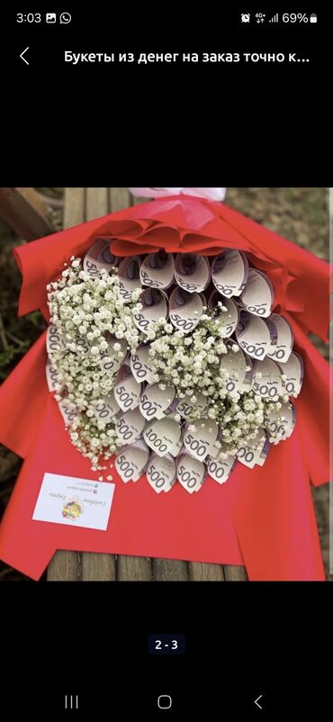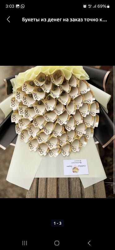 - Оригинальные композиции, собранные из настоящих банкнот, свернутых в аккуратные «лепестки».