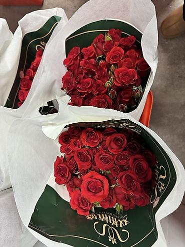 - Оформление: минималистичная упаковка в матовой белой пленке/бумаге; для красных роз — стильный зеленый конустик с золотистым принтом.