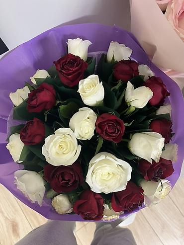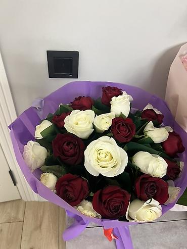 Букет из 27 роз: классическая композиция в бордово-белой гамме. Было куплено 29 января 2026 года