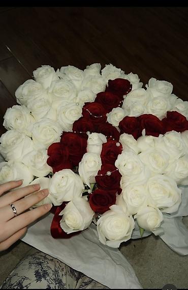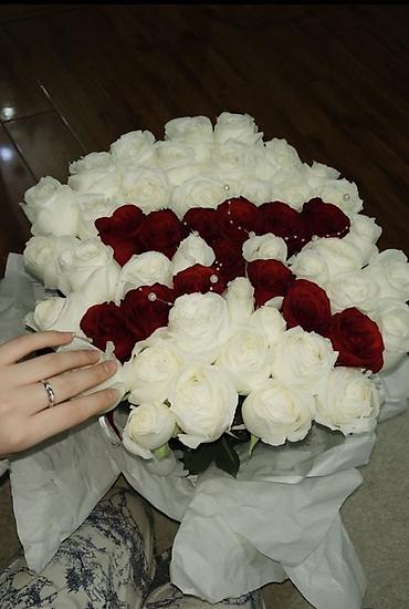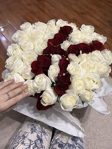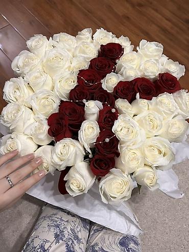 Идеальный акцентный букет с контрастом белого и бордового и романтичным сердцем внутри.