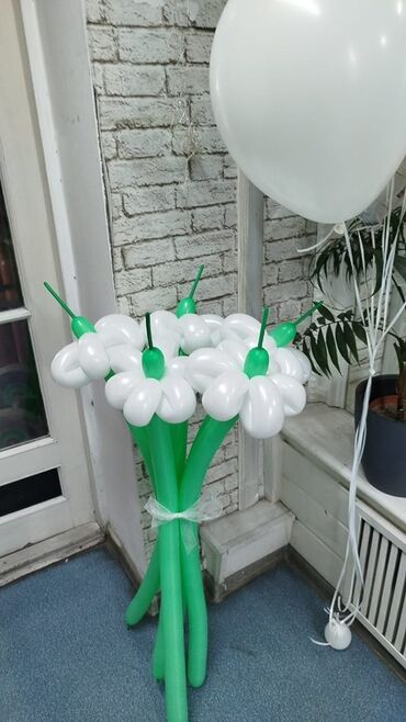 Букет из воздушных шаров в виде цветов. Включает в себя белые и