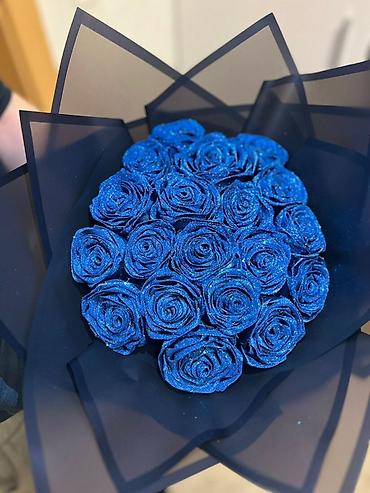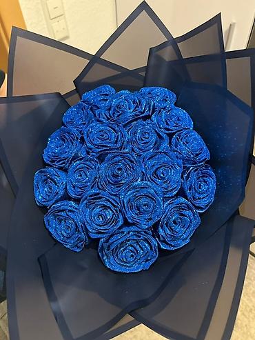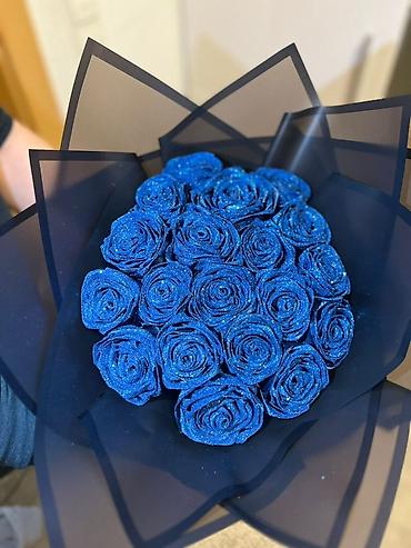 Букет из синих роз с глиттером - Состав: около 21 декоративная роза
