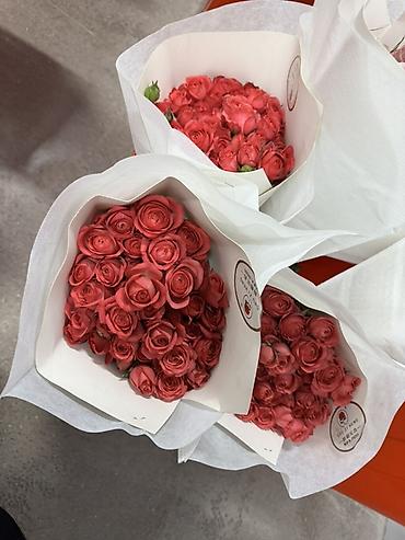 Розы-спрей Qiaoxiyang (мини-розы) в фирменных упаковках. Много бутонов на каждом стебле, плотные компактные шапки, отлично держат форму в букетах и композициях. Особенности: - Тип: веточные (spray...