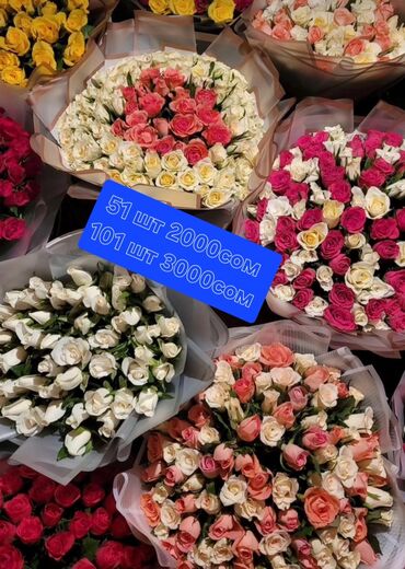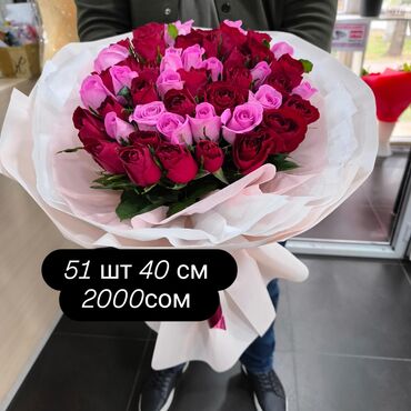 - Пример: букет 51 шт 40 см — 2000 сом (указано на фото).