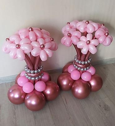 Набор воздушных шаров для оформления детского праздника, идеально подходящий для празднования рождения девочки. Включает большие прозрачные шары с надписями и розовыми элементами, а также композици...