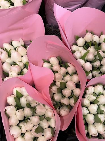Тюльпаны оптом упакованные в крафт - Ассортимент цветов: белые