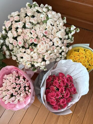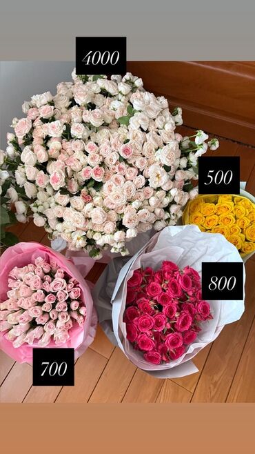 🌸 Супер-акция! 🌸 Все букеты — по 1000 сом. Большие букеты из 100 роз (розовые или белые) — по 2000 сом. Успейте заказать!