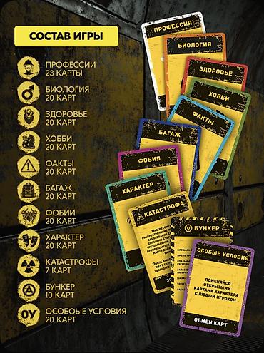 Настольная игра "Бункер" – это увлекательная игра, в которой игрокам предстоит убедить других в своей полезности, чтобы получить место в бункере во время апокалипсиса. Игра рассчитана на 2-16 игрок...