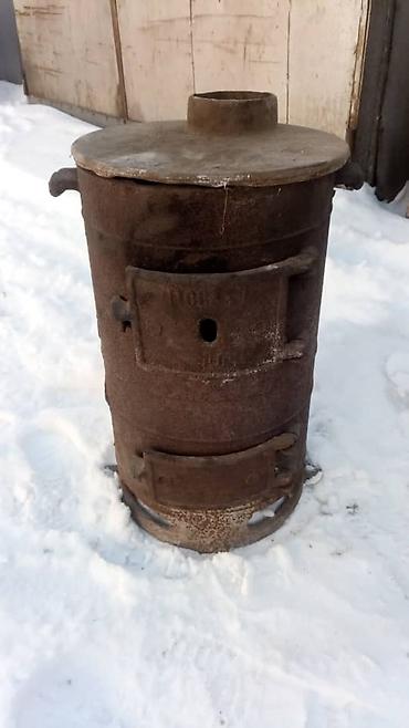 Печь-буржуйка коричневого цвета, выполненная из металла с