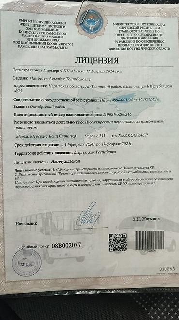 Bus for order, 18-20 seats with good sound system. Mersedes benz sprinter bus for order in the Bishkek city, Issyk kul lake, any place you want to visit in Kyrgyzstan, trips to the mountains for a picnic to Ala archa, Chunkurchak, Issyk Ata, Burana, Orlovka roddelban scating, skiing Zil, on balloon scating,team building, transfer from and to the airport.