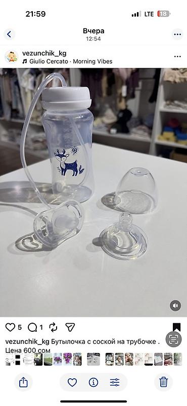 Бутылочка Avent 200 сом; поильник с трубочкой Avent 300 сом; поильник с силиконовым носиком большой Nuk 250 сом; поильник с пластмассоввм носиком Nuk 200 сом. при покупке нескольких будет скидка