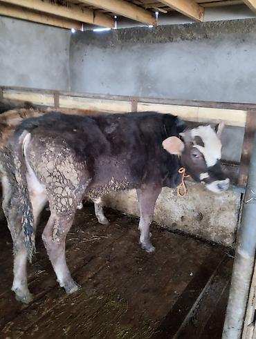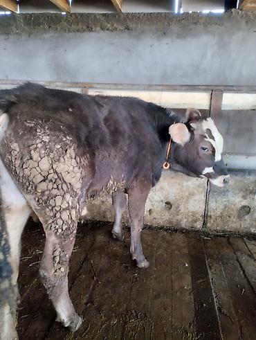 2 ургачы 1 эркек сатылат чалгыла Описание: - Возраст на фото — молодой теленок. - Порода: помесная, мясо-молочного направления (по типу телосложения). - Окрас: темно-коричневый/черный с белыми от...