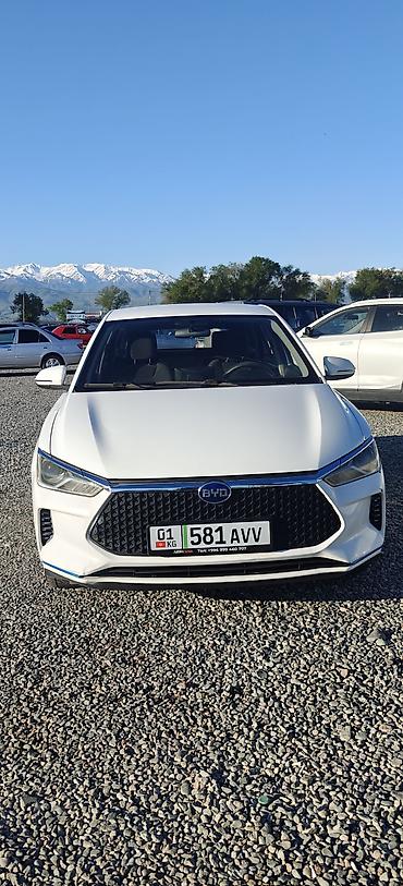 Номера KG, модель e2 EV указана на корме автомобиля. Цвет – белый. Отличный городской электромобиль с современным дизайном и удобным салоном.