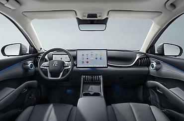 Белый кроссовер BYD с современным дизайном и динамичными линиями кузова. Автомобиль оснащен стильными черными дисками, подчеркивающими его спортивный характер. В салоне установлен большой сенсорный...