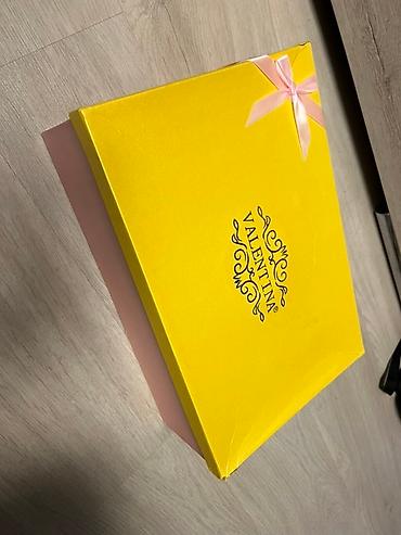 Упаковка: плотная подарочная коробка ярко‑жёлтого цвета с розовым бантом, внутренняя форма‑вкладыш из пеноматериала для безопасного хранения и перевозки.