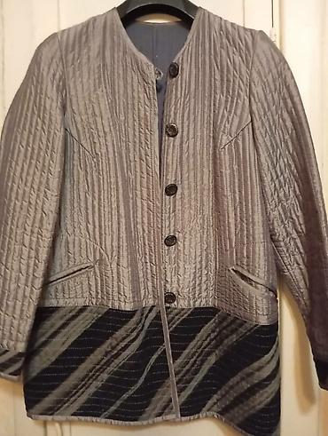 Куртка женская, размер M. - Цвет: черный с контрастной подкладкой с крупным геометрическим принтом. - Утепленная, стеганая. - Застежка: молния + кнопки. - Воротник-стойка. - Два боковых кармана. -...