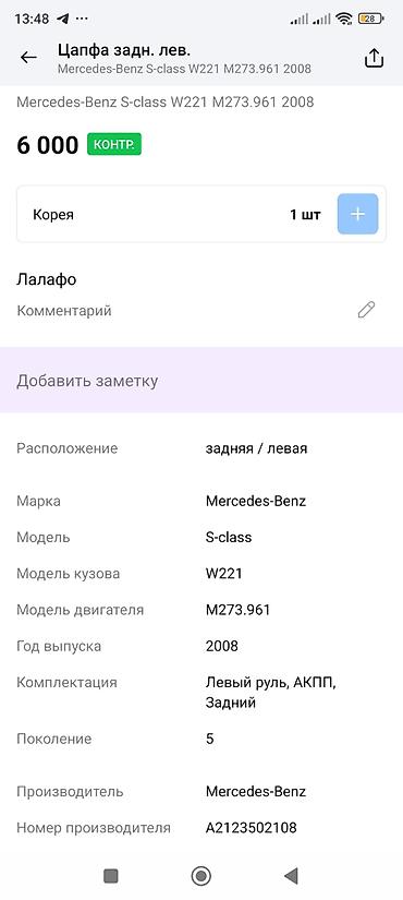 Деталь подвески в сборе с поворотным кулаком/цапфой, подходит для восстановления штатной геометрии задней оси и узла ступицы на W221 с указанными параметрами. Проверяйте совместимость по VIN и OEM‑номеру. Цена на фото.