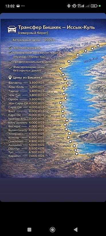Частный трансфер Бишкек — Иссык-Куль (северный берег) - Комфортные