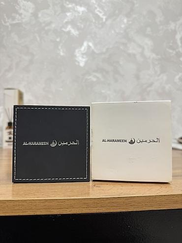 - Упаковка AL-HARAMEEN: фирменная подарочная коробка с логотипом, внешняя белая коробка и черный футляр.