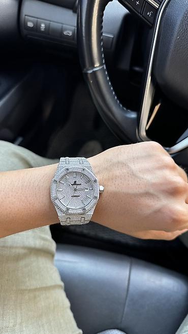 Эффектные наручные часы с ярким «iced out» оформлением, акцент на блеск и узнаваемый дизайн Royal Oak. Отлично подходят как для повседневного ношения, так и для торжественных выходов.