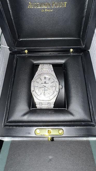 - Браслет из звеньев в стиле AP, также полностью инкрустирован.