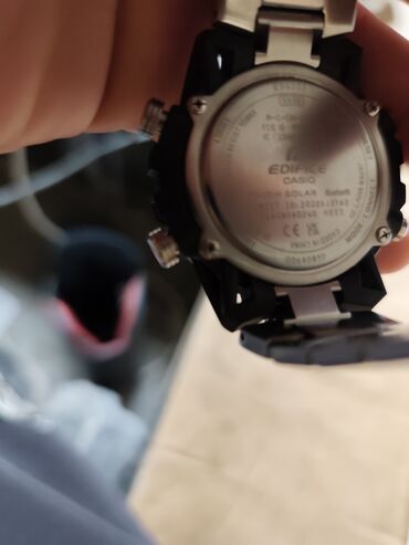 - Задняя крышка с гравировкой Edifice, обозначениями Tough Solar, Bluetooth, WR 10BAR, CE и серийной информацией.