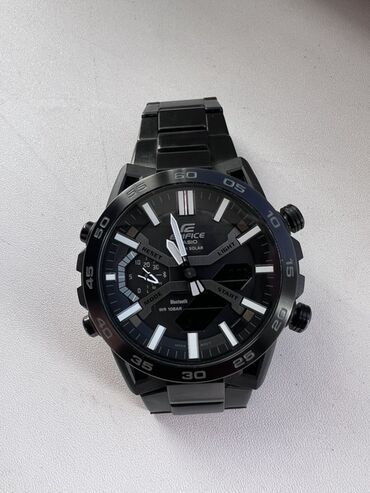 Стильный черный спортивный дизайн серии Edifice с технологией Tough Solar и возможностью подключения по Bluetooth для точной синхронизации и удобного управления функциями.