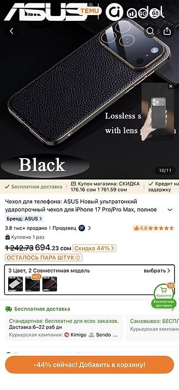 Продаю новый стильный чехол на IPhone 17 pro ASUS/adol (Black)
