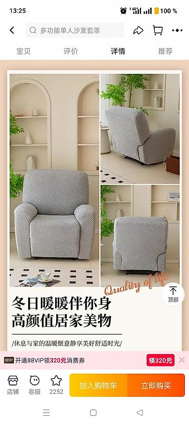 - Посадка: тянется по всем направлениям, облегает подлокотники, спинку, сиденье и подставку для ног; помогает скрыть неровности обивки и освежить внешний вид кресла.