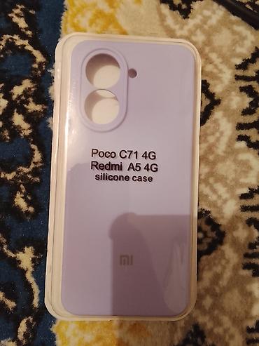 - Сиреневый силиконовый чехол (указано на упаковке: “Poco C71 4G / Redmi A5 4G silicone case”). Матовый софт‑тач, вырезы под двойную камеру и вспышку, бортики над экраном и камерой.