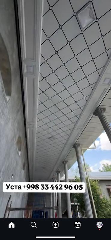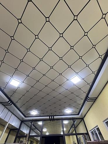 - Архитектурные кассетные и реечные решения: прямые рейки, «квадраты», ромбовидный рисунок; выразительные молдинги и карнизные элементы.