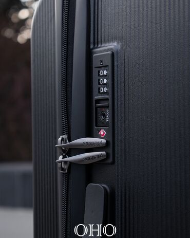 Жёсткий чемодан на колёсах - Корпус: жёсткий, ребристая текстура для устойчивости к царапинам. - Цвет: тёмный (чёрный/графит). - Колёса: 4 поворотных колеса для лёгкого маневрирования. - Ручки: ве...