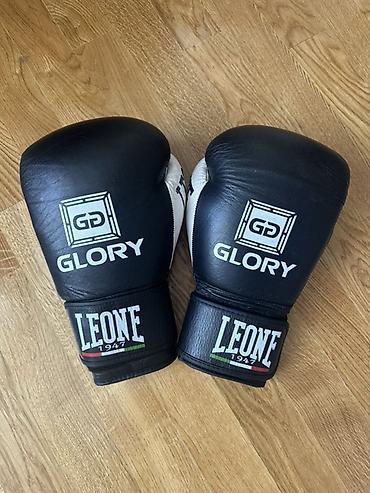 - Боксерские перчатки LEONE 1947 GLORY, черно‑белые. Плотный многослойный наполнитель для гашения удара, внешняя отделка под кожу, широкая застежка на липучке для фиксации запястья. Анатомическая форма кулака, вентиляционные вставки на ладони. Подходят для бокса, кикбоксинга, муай‑тая и тренировок на снарядах.