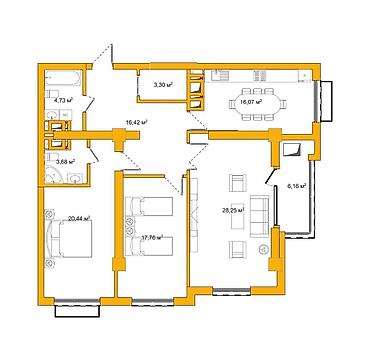 2 комнаты, 53 м², Элитка, 3 этаж, Готовая ПСО (под самоотделку)