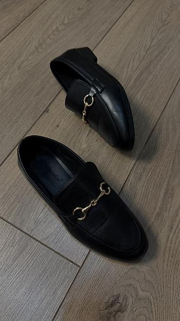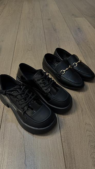 Уточняйте модель: классические лоферы с золотистой фурнитурой или лакированные дерби на платформе.