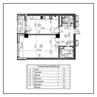 1 комната, 63 м², Элитка, 2 этаж, Готовая ПСО (под самоотделку)