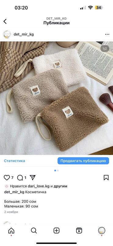 Компактная, мягкая удобная косметичка. Новый, остались 3шт последние. Цвет просто🔥, нереально красивый и удобный, мечта каждой девушки Цена 500 сом всего.