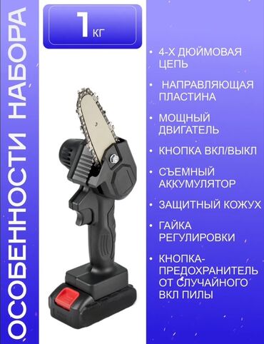 Компактная аккумуляторная пила. Вес пилы составляет 1 кг. Длина шины 10 см. Подходит для обрезки небольших веток и других мелких работ по дереву