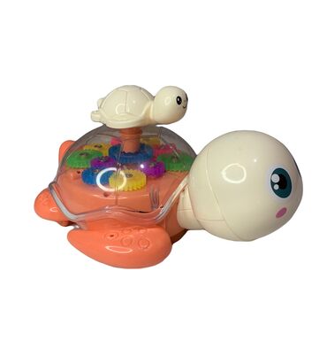 Игрушка Прозрачный. Музыкальный светящийся черепаха. Автоматически вращающееся колесо задает различное направление движения. Благодаря прозрачному корпусу черепаха, ребенок с легкостью рассмотрит все разноцветные вращающиеся шестеренки. Мигающая подсветка, громкий динамик и веселая музыка.