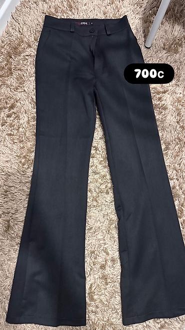 1) Брюки — классические, прямые с легким расклешением к низу, высокая посадка, застёжка на молнию и пуговицу, без декоративных элементов. Универсальная база для офиса и повседневных образов.
