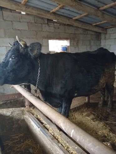 Черная корова с рогами, ручная, содержится в стойле. Животное крепкого телосложения, аккуратная голова, ровная спина, хорошо развитое вымя и конечности. Спокойный характер, стоит на привязи, спокойно реагирует на людей и уход. Подходит для личного подсобного хозяйства: молочное направление, возможна откормочная программа. На фото видно состояние стойла и условия содержания: сухая подстилка, вентиляционное окно, крыша из металлопрофиля. Отличный вариант для расширения домашнего стада или начала хозяйства.