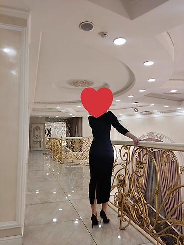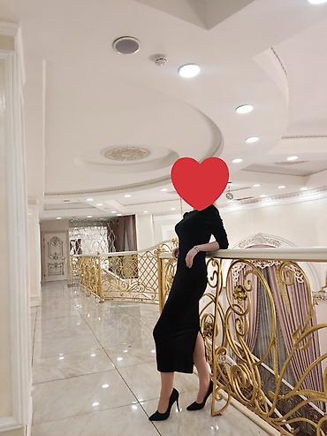 Черное бархатное платье миди
