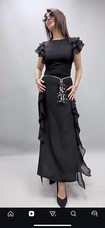 Вечернее платье, Коктейльное, Длинная модель, Шифон, С рукавами, L