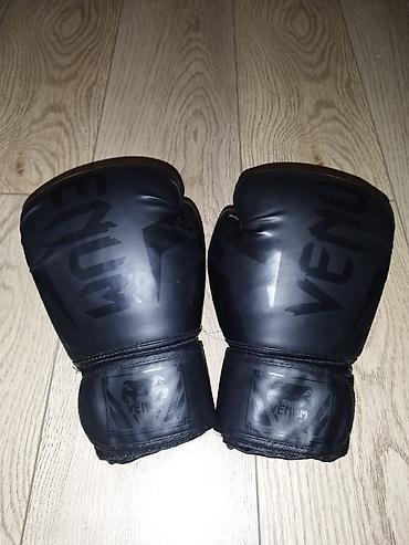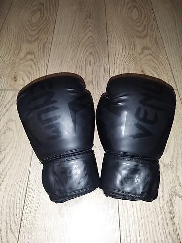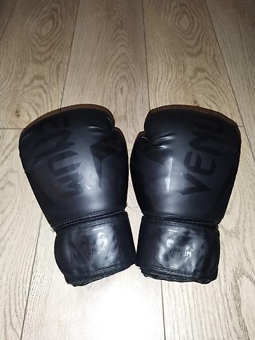 Боксерские перчатки Venum, цвет черный (мат/глянец с тонким принтом логотипа).