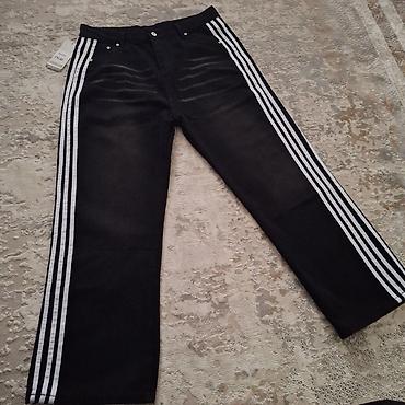 Эти брюки объединяют спортивную эстетику лампасов и удобство джинсового кроя. Отличный вариант для тех, кто любит минимализм с ярким акцентом.