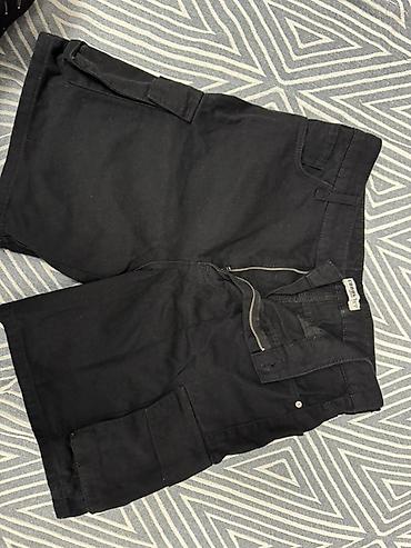 - Карманы: классические боковые, задний накладной, большие накладные карманы по бокам (карго)