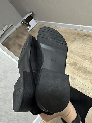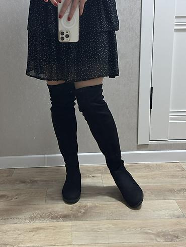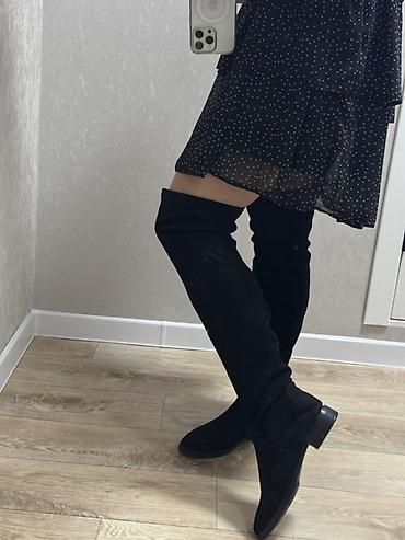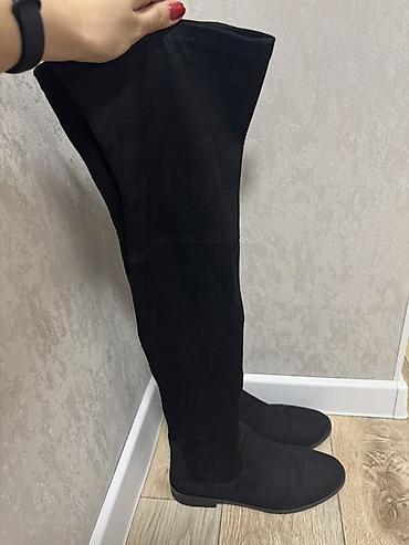 Высокие женские сапоги, демисезонные. - Материал: натуральная кожа (гладкая, матовая). - Цвет: черный. - Размер: 38. - Посадка до колена, плотный голенище. - Декор: ремешок с металлической пряжкой/...