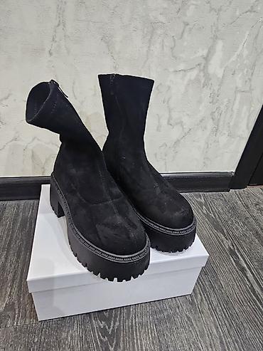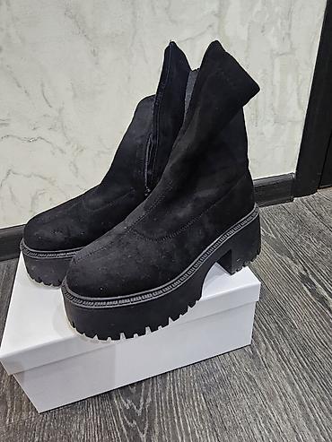 Черные женские ботинки/полусапоги с молнией по бокам.